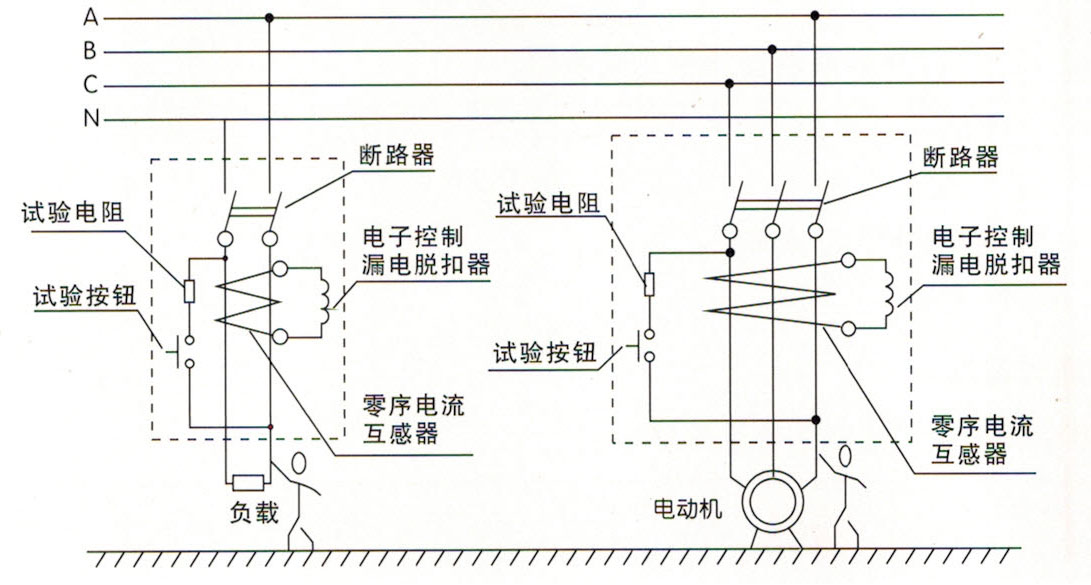 l:当发生漏电时,漏电报警模块发出信号,同时断路器脱扣;