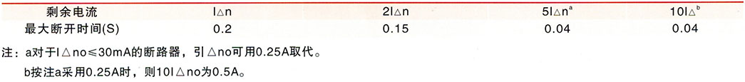 一般型断路器的动作特性见表8。I△no≤30mA的断路器应是非延时型。