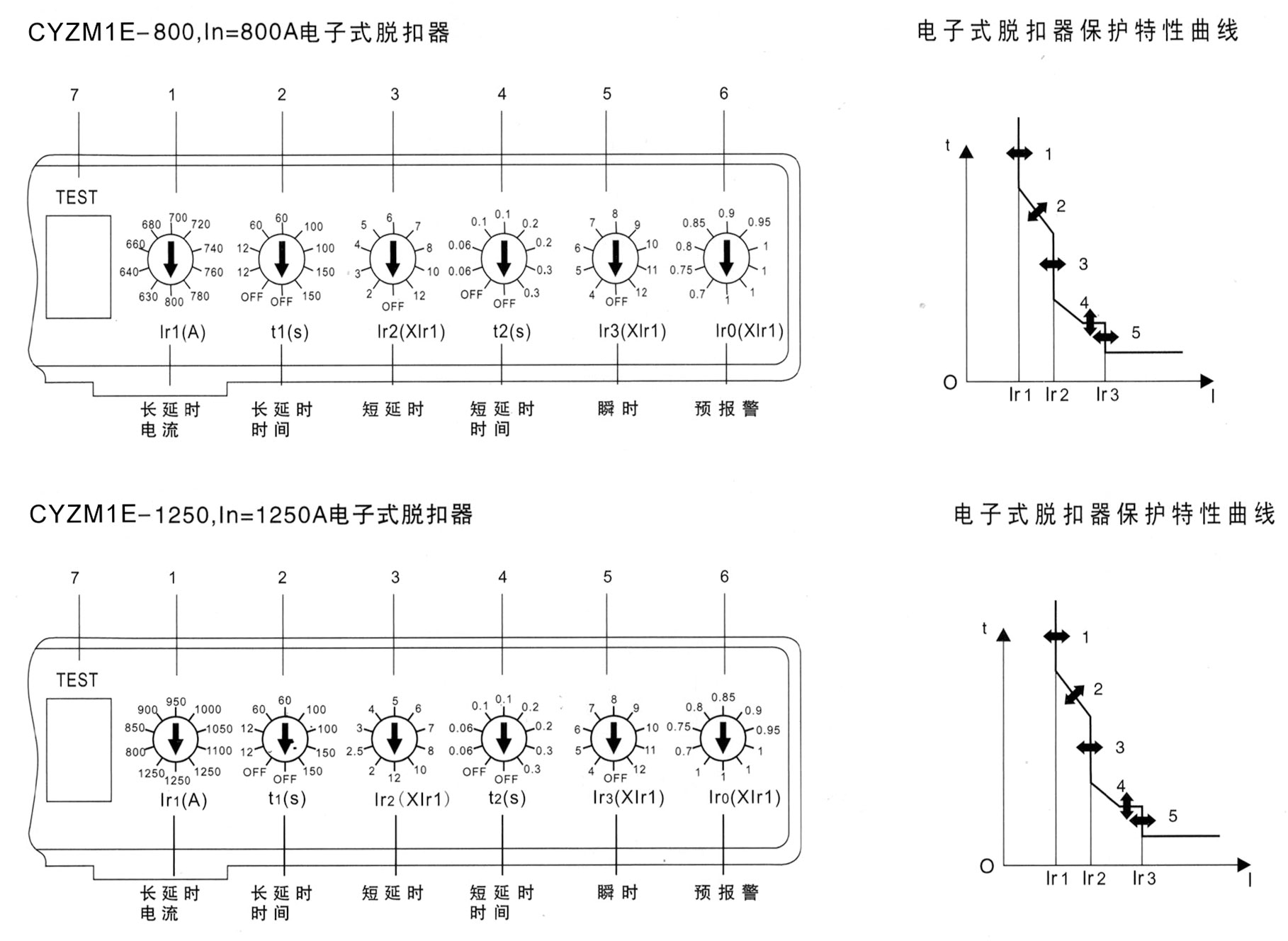 5、短路瞬时动作电流Ir3调整,可进行8档、9档或10档调整;