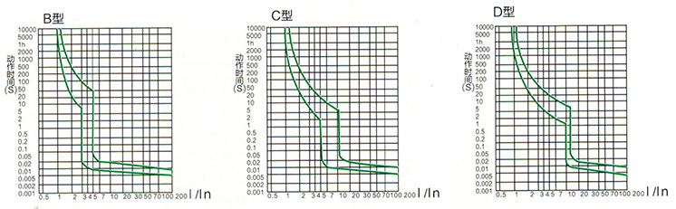 4、按瞬时脱扣器的型式分:B型( 3In-5In )、C型(5In-10In ) 、D型(10In-14In)。