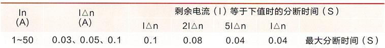 2、额定剩余接通和分断能力I△m:500A;3、额定剩余不动作电流l△no:0.51An;4、剩余电流动作分断的时间(见下表)